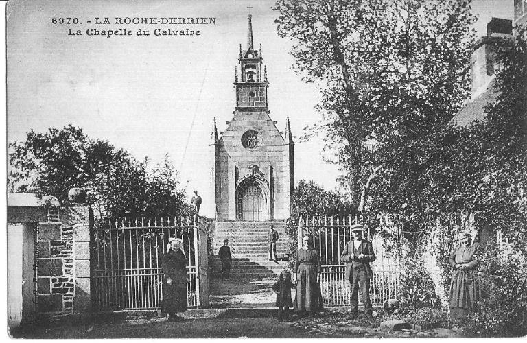 Partie constituante de l'hôpital Sainte-Anne à Lannion, la chapelle de style néo-gothique est vendue par les soeurs hospitalières en 1866, peu de temps après son édification. Elle est remontée à l'emplacement du donjon du château de La Roche-Derrien et prend le vocable de Notre-Dame du Calvaire en l'honneur de la Sainte-Vierge. Un oratoire figure à son emplacement sur le cadastre ancien de 1839.