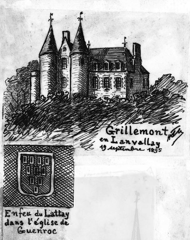 Un relevé daté vers 1635 (avec incertitude) mis en ligne sur le site de Lanvallay par Jean-Pierre Fournier indique un plan d'ensemble un peu différent de la propriété actuelle. Le logis et les jardins réguliers de part et d'autre de la cour carrée forment une composition savante, cependant le logis initial semble prolongé vers le nord d'une aile simple en profondeur qui pourrait correspondre à celle élevée vers le sud . S'agit-il d'une erreur du géomètre qui mentionne par contre le logis du jardinier et son débord sur la rue.