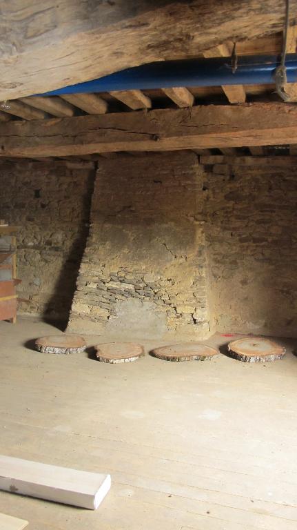 Ancien logis à trois pièces au sol déclassé en dépendances. La partie à étage conserve en rez-de-chaussée un escalier en vis en charpente situé dans un angle arrondi immédiatement à gauche de l'entrée. Actuellement une seule cheminée est conservée dans la salle basse. La chambre qui était éclairée par deux fenêtres l'une sur la cour et l'autre arrière sur la campagne, possède un évier pour tout élément de confort.