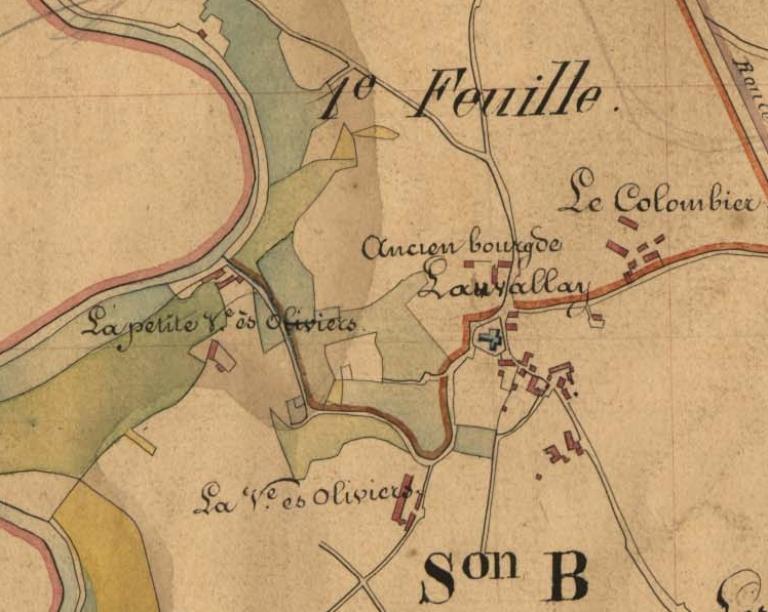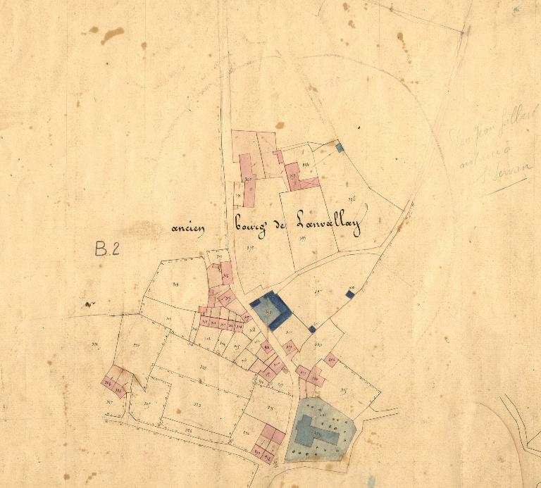 Le bourg de Lanvallay, appelé aujourd'hui « le vieux bourg » se situait le long d'une route qui à l'époque de la fondation de la paroisse était la voie d'accès au port de Dinan dans la direction de Rennes. Cet ancien chemin historique qui reliait le centre paroissial au faubourg de la Madeleine a été progressivement abandonné et c'est converti aujourd'hui en simple sentier.