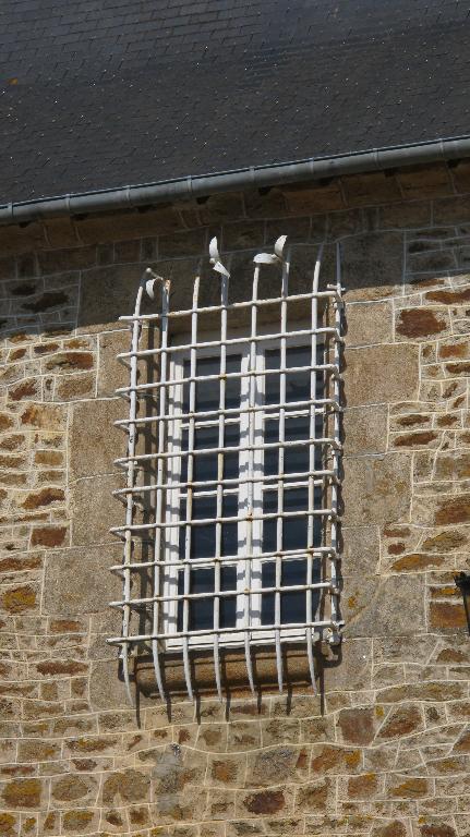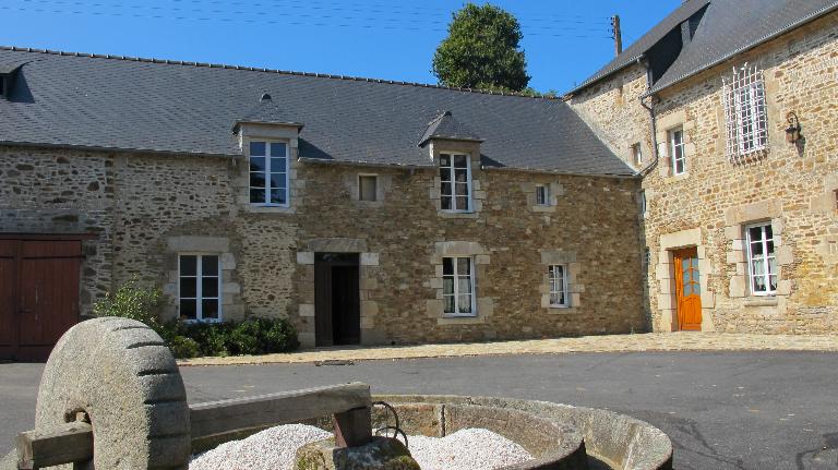 La façade du logis sur la cour est orientée sud est. Elle présente une élévation soignée en moellons de granite qui sont dressés de manière décorative à côté de la fenêtre de l'étage. La corniche et la souche de cheminée sont en pierre des faluns.