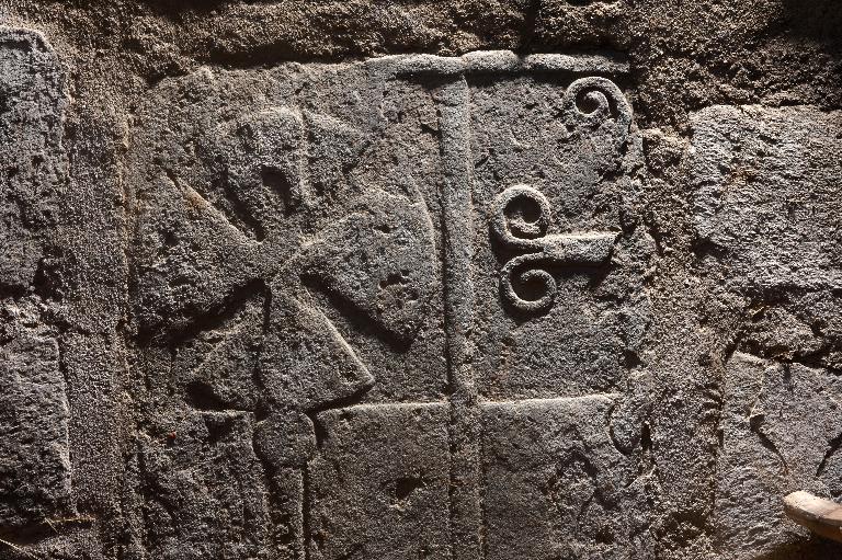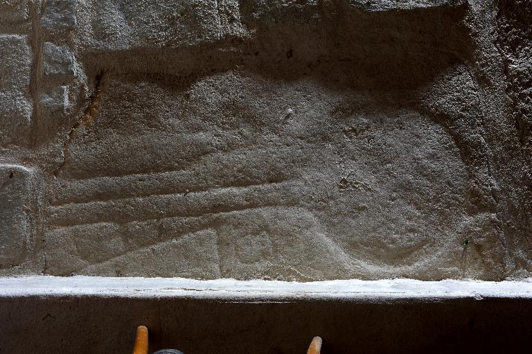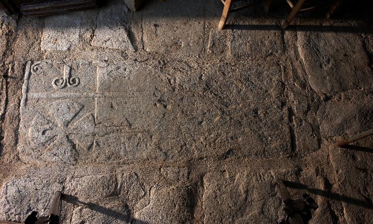 Au sol, le dallage remploie des pierres tombales médiévales dont l'une présentant une croix pattée et des arabesques celtiques (plusieurs dalles se trouvent également à l’extérieur de la chapelle). Sacraire ancien situé à gauche de l'autel (doté à l'origine d'une porte). Autel en pierre récent. Une niche aurait servi autrefois de réceptacle à plusieurs crânes (il s'agissait probablement des crânes des bienfaiteurs de l'église...).