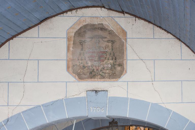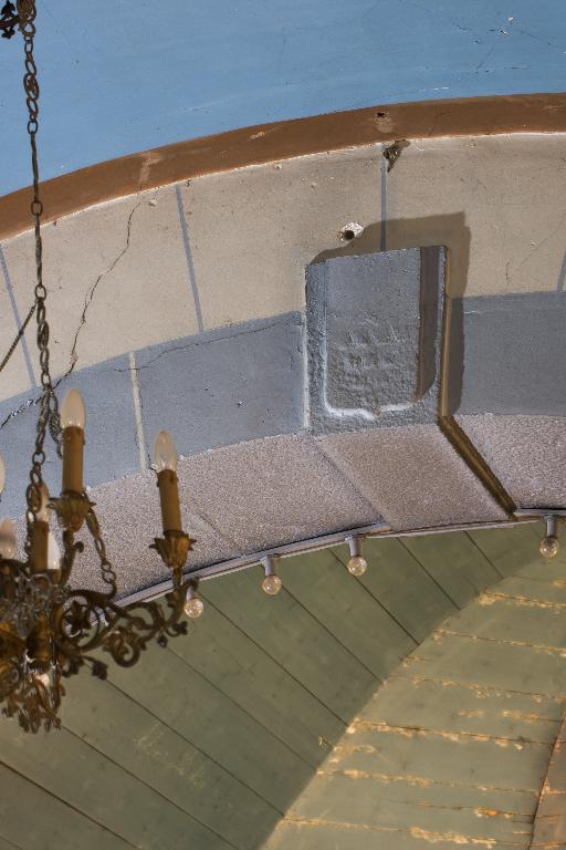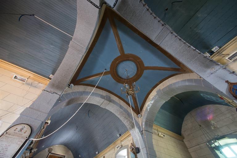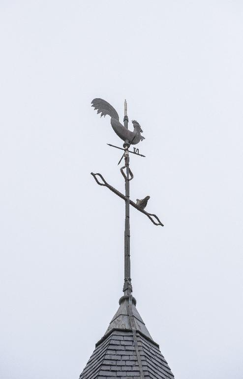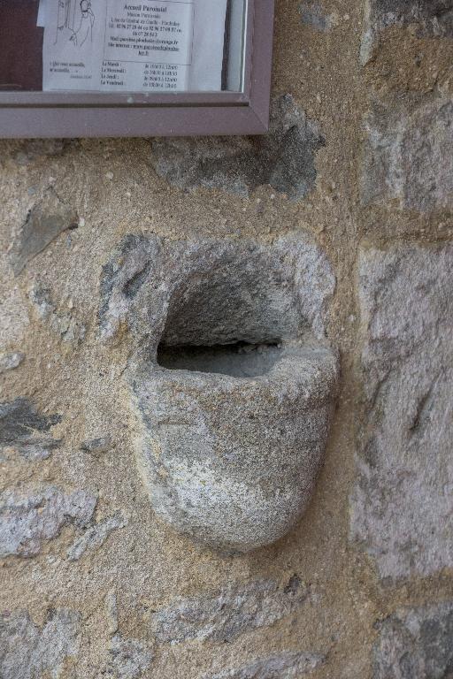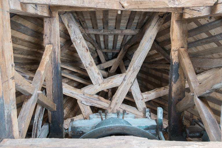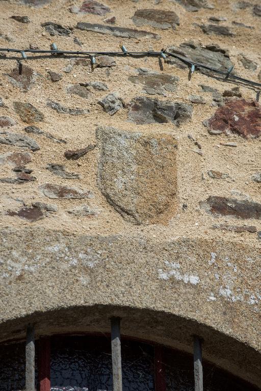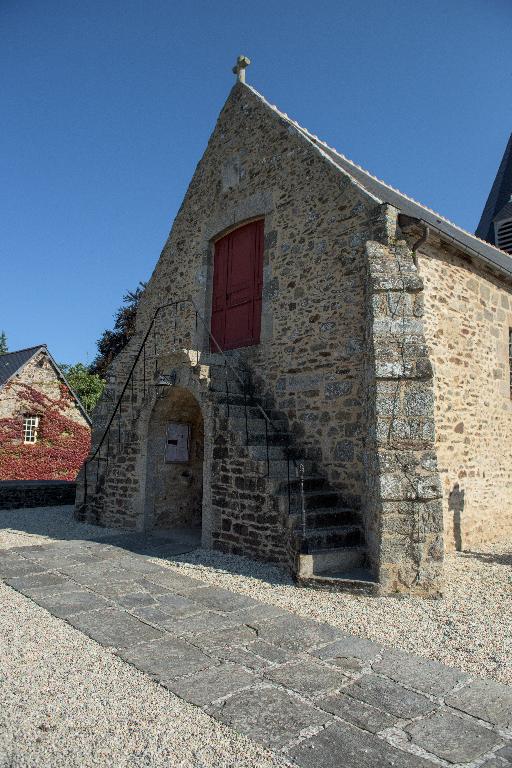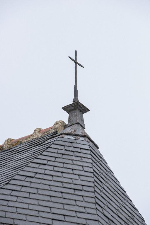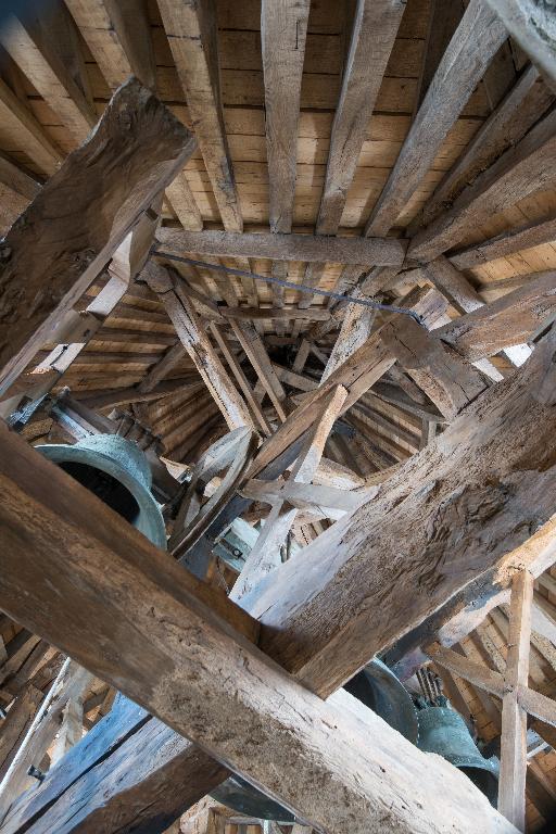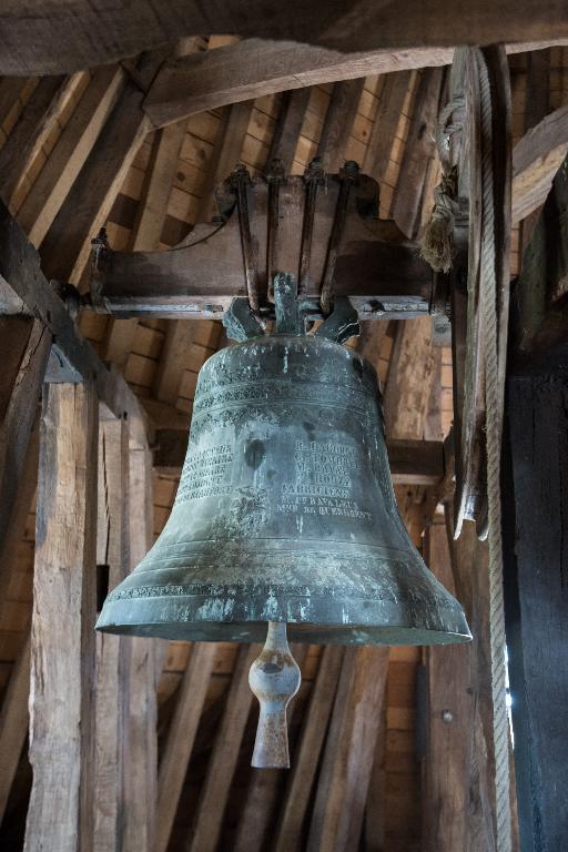 Le clocher abrite 3 cloches réalisées en 1851 et en 1871. Chacune d'entre elle est baptisée par un prénom : Joséphine-Sophie, Louise-Marie-Xavière et Marie-Anne-Jeanne. Sur le côté droit de la nef, on remarque au sol une pierre tombale sur laquelle sont gravés une inscription et un blason. Ce dernier, représente trois canettes correspondant aux armoiries de la famille De Pontual. La croix ajoutée dans la pointe de l'écu est probablement encadrée de deux initiales. Il peut s'agir d'une branche de cette famille, celle des sieurs de la Croix, qui fut déboutée à la réformation de 1671.