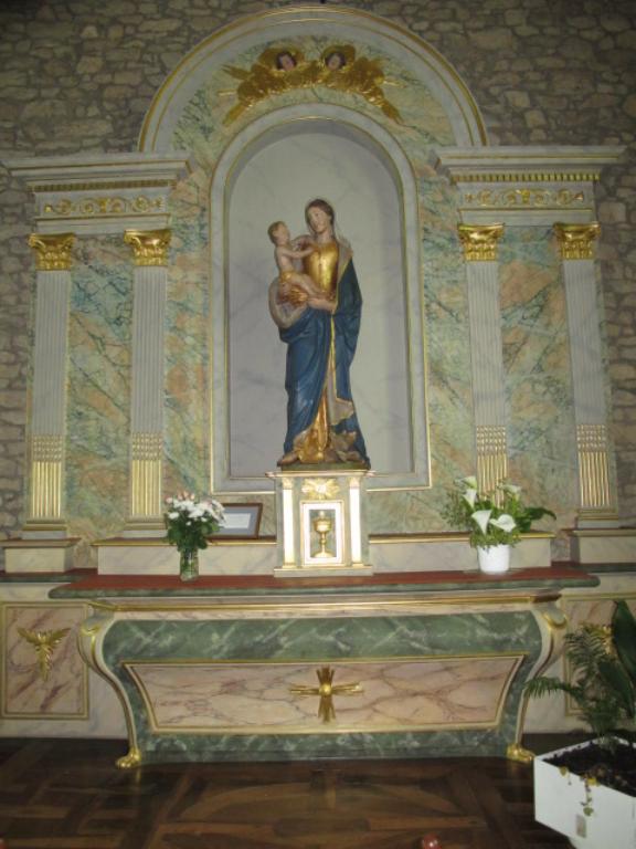 Parmi les beaux éléments du mobilier, signalons une vierge à l'enfant du 17e siècle, qui reprend les modèles des ateliers du Maine et un lutrin du 18e siècle représentant le pélican nourrissant ses petits.
