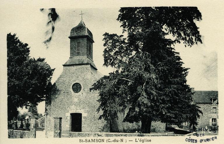 Sous l'Ancien Régime, la paroisse de Saint Samson était une enclave du diocèse de Dol dans celui de Saint-Malo. Les premières mentions d'une église dédiée à Saint Samson apparaissent au 14e siècle. Elle était située en bordure de la Rance, face au village du Lyvet.