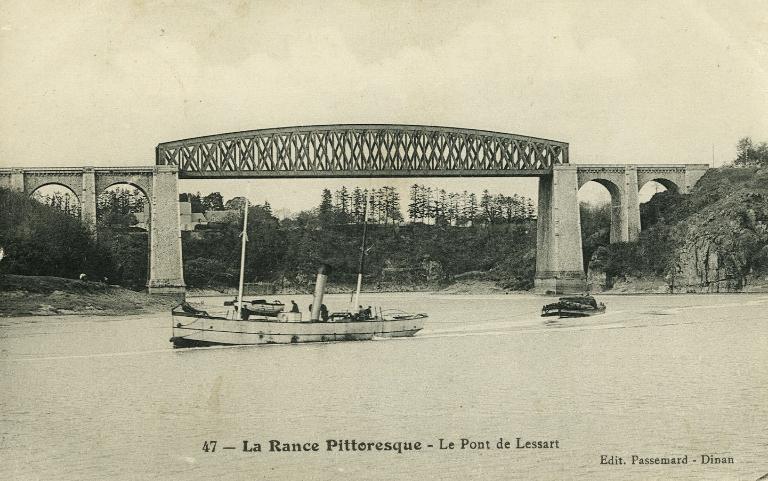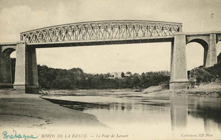 Le premier pont de Lessard fut construit en 1879 par la Compagnie des Chemins de Fer de l'Ouest, cherchant à mettre en place une ligne stratégique qui relierait Brest à Cherbourg, la Bretagne à la Normandie. Cette ligne était à l'époque considérée par beaucoup comme un atout économique majeur : de nombreuses communes voulaient voir passer le train à leur porte. Mais après de nombreux débats et discussions, un tracé définitif fut mis en place, tracé qui devait finalement traverser la petite commune de St Samson. En conséquence de cette décision, un grand pont fut créé à proximité du château du Châtelier, enjambant la Rance et reliant par le train les deux régions.