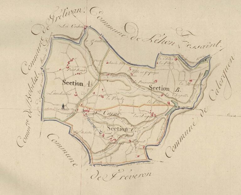 Le village, dont l’église a été majoritairement reconstruite au 19e siècle, présente toujours plusieurs alignements de logis du 17e siècle, reconnaissables à leurs portes cintrées et leurs pignons pentus. Ces ensembles de logis mitoyens avec cours et droits de passage témoignent d’une organisation antérieure de « ruelles rurales », comme celle partant de l’église vers la Cour des Aistres. La rue Josse est indiquée dans un aveu de 1697 où il est fait mention de "la prestimonie" de la rue Josse. Au nord- est de l’église, un ancien logis avec des remplois du 16e siècle, reconnaissable par ses niveaux de toiture décalés, abritait jusqu’en 1835 la perception de Saint Carné, Lanvallay, Quévert, Aucaleuc, Trélivan et Léhon, qui fut transférée ensuite à Dinan. Plusieurs belles maisons sont construites à la fin du 19e siècle au nord du bourg menant à la nouvelle école, qui se distingue de la construction environnante par sa composition à pavillons et ses toitures débordantes.