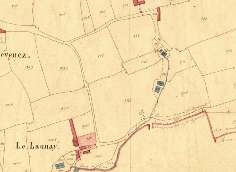Les deux routoirs du Launay sont figurés sur le cadastre ancien de 1835 (parcelles 881 et 882), ils appartiennent à Yves Cozanet, riche cultivateur, propriétaire de la ferme du Launay et de l'ancien manoir du Rumain.