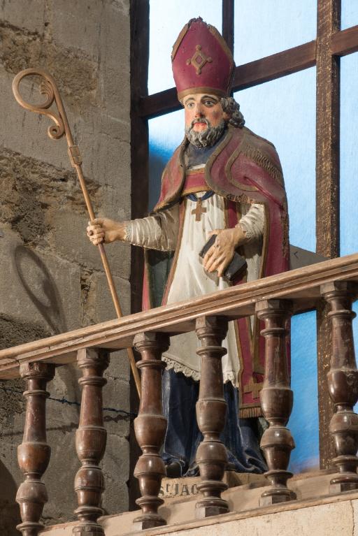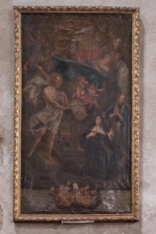 La maîtresse-verrière ne se situe pas sur le chevet. Elle est installée sur la façade nord et éclaire l'autel latéralement. Cette disposition est sûrement liée au baldaquin (classé) disposé au-dessus de l'autel. En vis-à-vis, une autre ouverture en plein-cintre permettait aux religieux de suivre la messe en même temps que les laïcs, sans communication entre eux.