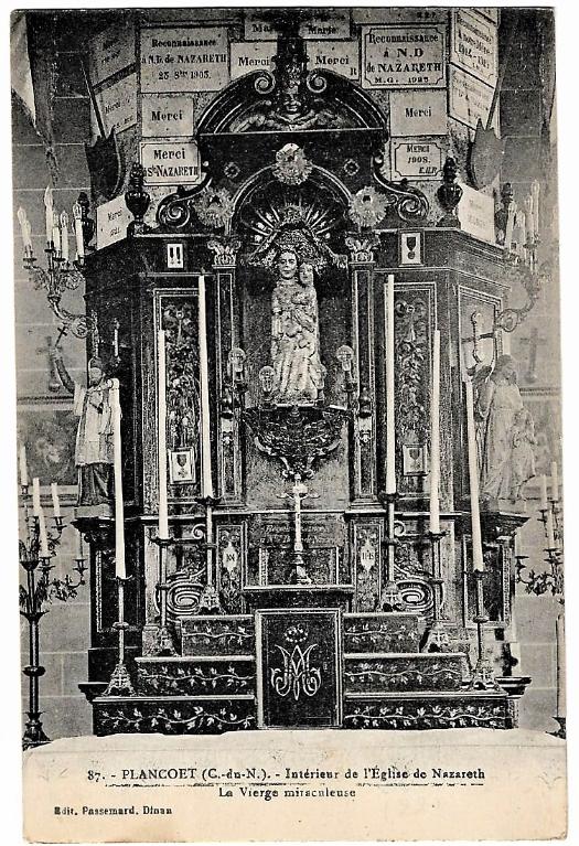 L'enfeu enchâssé dans la maçonnerie dans le collatéral droit serait celui de la Baronne de la Hunaudaye. Son cercueil de plomb est transporté à la chapelle de Nazareth en décembre 1647, avant même la construction de l'église, en prévision d'y reposer.