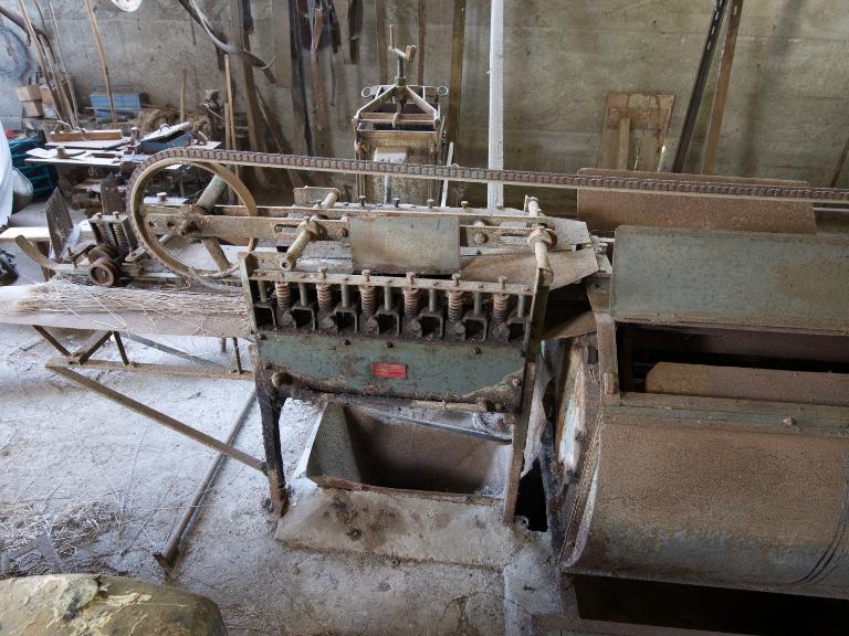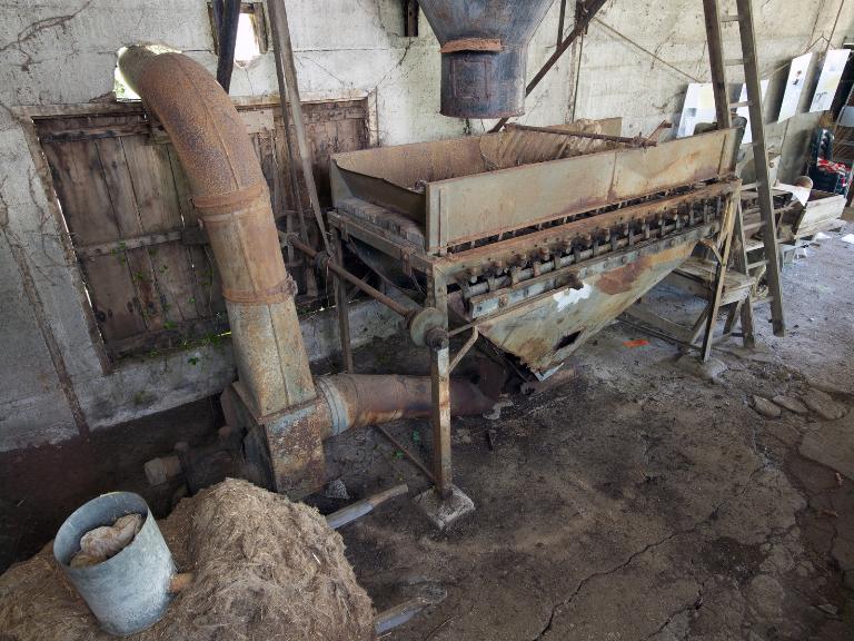 Deux hangars construits en parpaing de béton, planches de bois et tôle ondulée abritent respectivement le teillage et l'entrepôt destiné au stockage des bottes de lin. Le teillage motorisé comprend la teilleuse et les autres machines et outils nécessaires à la transformation du lin : égreneuse, peigne à lin, broyeur, teilleuse, "secoueuse" de chènevotte, système d'aspiration, presse pour les ballots de filasse, bascules...
