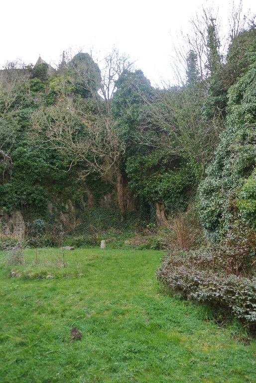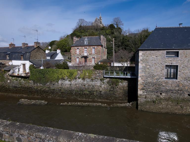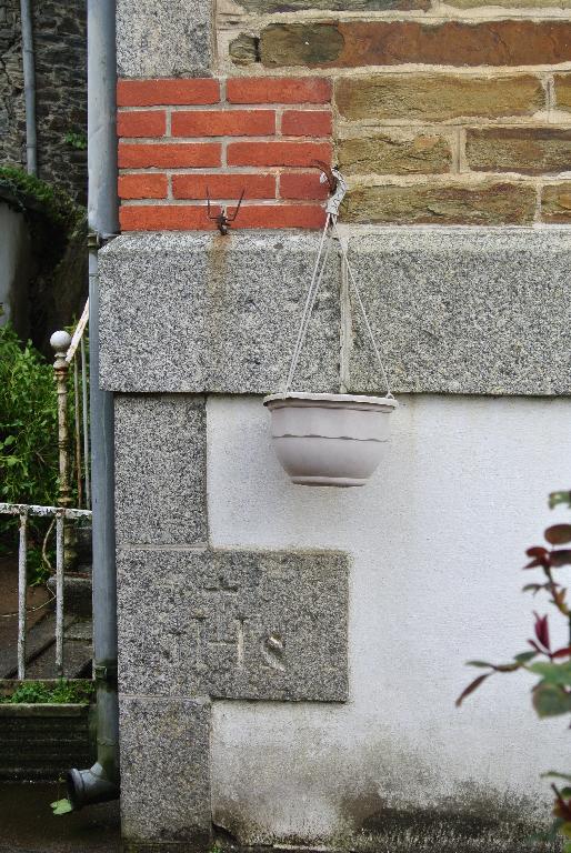 Maison construite rue de la rive, en 1903, pour et par l'entrepreneur Jean-Marie Toupin de La Roche-Derrien, à l'emplacement de la carrière de schiste située au pied de l'ancien château. Le monogramme IHS est couramment apposé sur l'angle des soubassements de maisons édifiées par Jean-Marie Toupin comme ici, sur sa propre habitation.