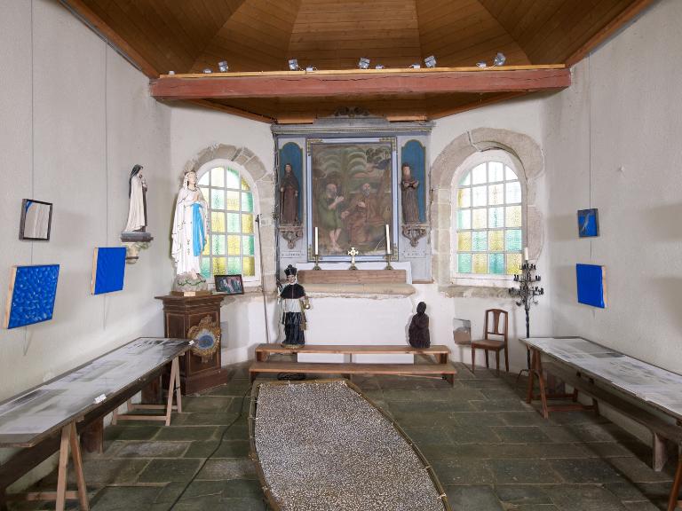 Petite chapelle sans décor construite en moellon de schiste avec encadrements de baies en granite. Le plan est allongé, à nef unique, avec un chevet à trois pans éclairé par deux baies latérales en plein cintre. Le clocheton est à l'aplomb du pignon ouest. Les murs sont blanchis à la chaux, le sol est couvert de dalles de schiste ardoisier, le lambris de couvrement est moderne.