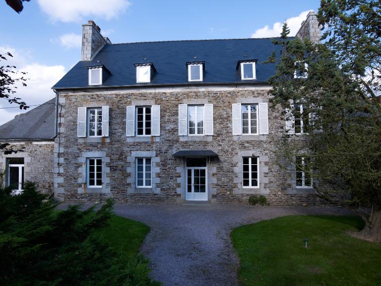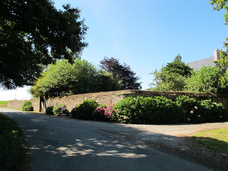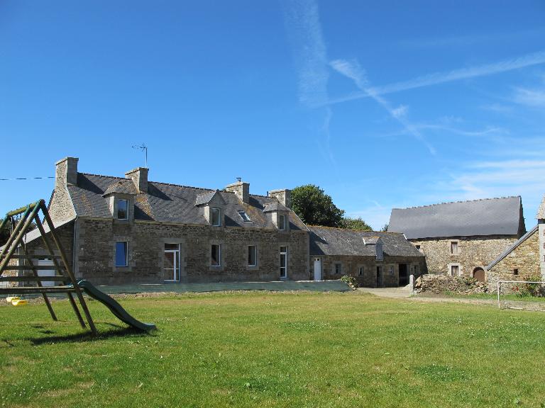 Grande ferme concertée composée d'un logis et de dépendances disposées autour d'une cour, au nord. Un jardin clos de mur, avec portail d'accès en pierre, est aménagé au sud du logis. Celui-ci présente un plan double en profondeur, à double orientation nord-sud avec élévation à cinq travées. Deux pavillons latéraux couverts d'un toit à croupe encadrent le logis construit en pierre de taille de schiste avec encadrements de baies et chaîne d'angle en granite. Le vestibule d'entrée est entièrement lambrissé, il dessert le salon et la salle à manger, situés en vis à vis, ainsi que la cuisine qu'isole un sas de séparation dans l'axe de la porte d'entrée. L'escalier tournant en charpente dessert les chambres de l'étage.