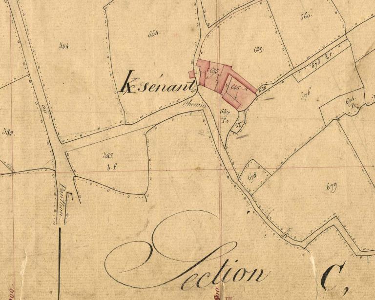 Si la tour d'escalier, l'escalier en vis, quatre encadrements intérieurs de portes, certaines pierres de taille (linteaux en accolade et appuis saillants) du logis sont datables du 16e siècle ; une partie importante du logis a été reconstruite en 1770 comme l'atteste un linteau du 16e siècle réutilisé, à l'envers, au 18e siècle. Ce linteau porte l'inscription et le millésime suivants : "FFP [Fait faire par] R. MARIE LE ROUGE Sr DE KERSENANT L'AN 1770".