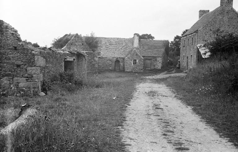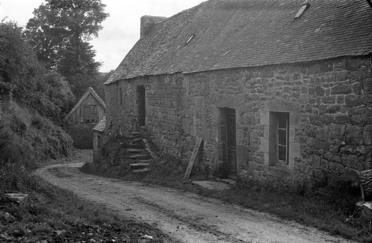 - la protection contre les vents dominants d’ouest (pluvieux) et du nord (froids) grâce au relief. Souvent implantés à mi-pente, les bâtiments d’habitation tournent ainsi le dos au vent ; les fenêtres sont uniquement percées dans la façade sud. Autour des hameaux, le bocage permet d’atténuer l’effet du vent. Dans le Finistère, au climat plus océanique, l’orientation des logis est marquée vers le sud-sud-est alors que dans le Trégor maritime, soumis à des vents de nord-est, ils sont tournés légèrement vers le sud-sud-ouest. L'ancien presbytère de Trémel construit en 1625 en est un bon exemple : sa façade principale est orientée vers le sud-ouest. La ferme du Louc'h par contre, est orientée vers l'ouest-sud-ouest mais la porte d'entrée du logis est abritée par l'avancée centrale.