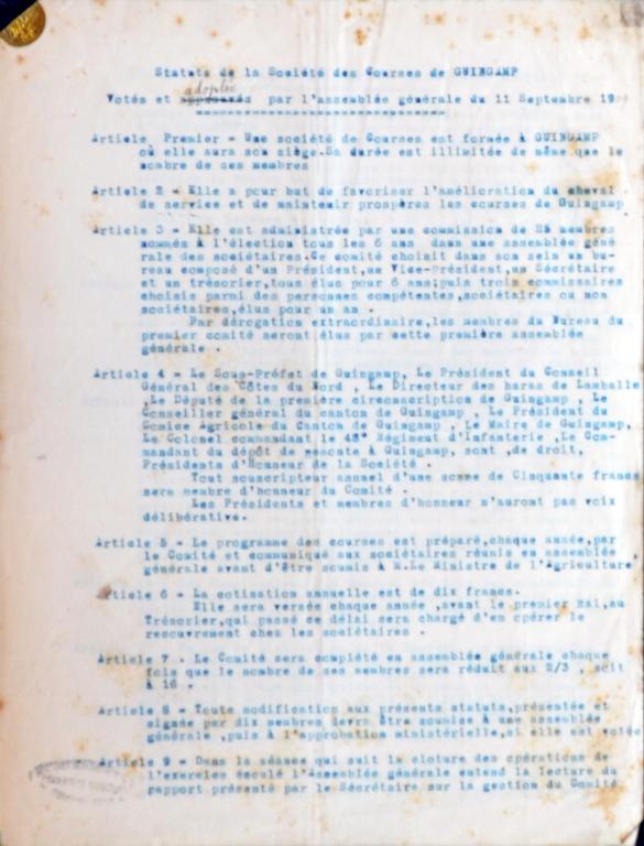 La création de la société des courses de Guingamp remonte à 1842.