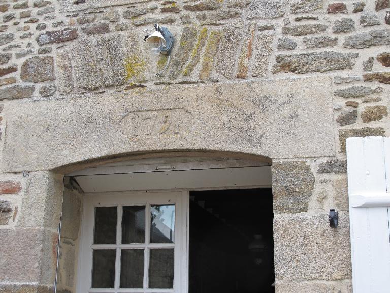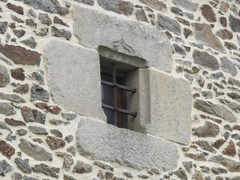 La métairie en retour d'équerre réemploie dans sa maçonnerie une ancienne baie, dont le linteau en accolade est sculpté d'un calice, symbole de la prêtrise.