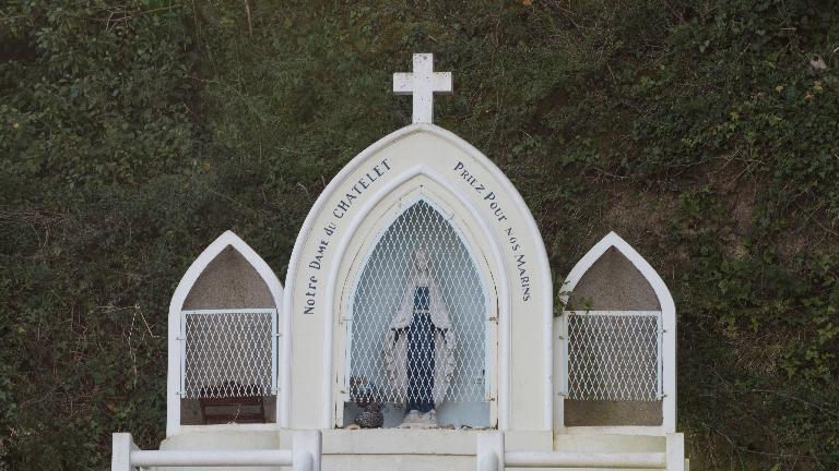 Construit au pied de la falaise, l'oratoire se présente sous la forme de trois niches reposant sur un soubassement. Une grande niche centrale fermée par un grillage et encadrée par l'inscription « Notre-Dame du Châtelet, priez pour nos marins », abrite la statue de la Vierge, de Lourdes, en plâtre polychrome. Également closes par un grillage, deux petites niches latérales entourent la niche centrale. Elles sont constituées chacune en partie haute d'un arc brisé surélevé et reposent sur un soubassement légèrement concave. Une croix à simple traverse surplombe actuellement la niche centrale.