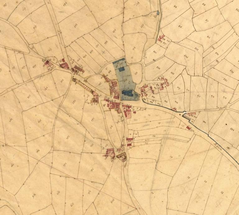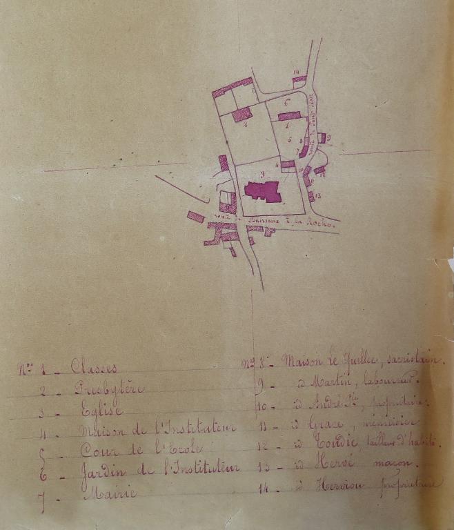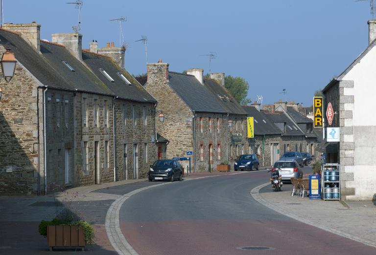 Le bourg s'organise en fonction de l'église paroissiale citée lors du procès de canonisation de Saint-Yves en 1330. Autour de ce noyau ancien s'ordonnent le cimetière au sud et le presbytère reconstruit au nord en 1706. Sur le plan cadastral de 1835, le bâti est assez développé, il compte une cinquantaine de maisons mais c'est seulement à partir de la fin du 19e siècle que les habitations et les commerces se multiplient le long des voies de communication. La structure très simple de l'agglomération n'a pas été bouleversée par un plan d'alignement, elle demeure telle qu'elle est figurée sur le cadastre ancien. Entre la seconde moitié du 19e siècle et le début du 20e siècle, les nouveaux pouvoirs intègrent les écoles (entre 1847 et 1907), la mairie (entre 1899 et 1903), la gare (vers 1905, aujourd'hui disparue) et le monument aux morts (1930). En 1903, la mairie se trouve dans le petit bâtiment situé dans le prolongement de l'actuelle mairie, à l'est, comme l'indique le plan du bourg numéroté.
