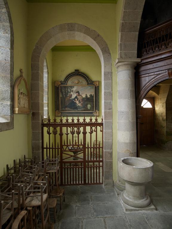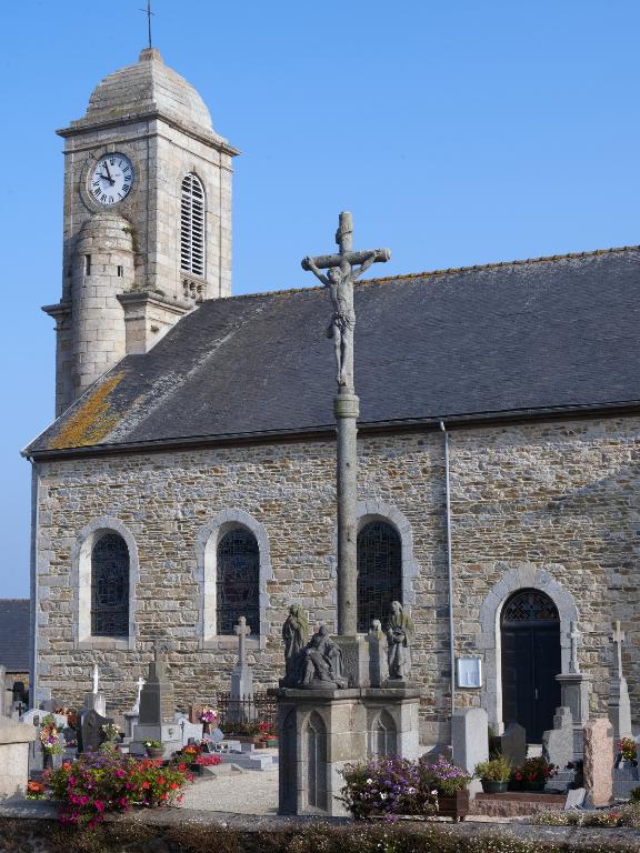 Les seigneurs de Coatnevenez, de Kerespert, de Kericuff-Kercabin, de Rocumelin avaient des prééminences dans l'ancienne église. Celle-ci est figurée sur le cadastre ancien, elle présente un parti très différent de l'église actuelle avec porches et chapelle au sud, du côté de l'Epître, propriété de Jean de la Noé, seigneur du Kenkiz (d'après un acte notarié du 17 décembre 1679).