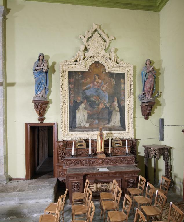L'édifice abrite un important mobilier : retable de Notre-Dame du Rosaire de 1715, réalisé par Yves Corlay ; maître-autel daté 1778, réalisé par Jacques-François Anfray ; chaire à prêcher de 1672 ; trois tableaux dont une Nativité offerte par Napoléon III en 1856 ; orgue du 19e siècle ; christ en croix du 16e siècle...