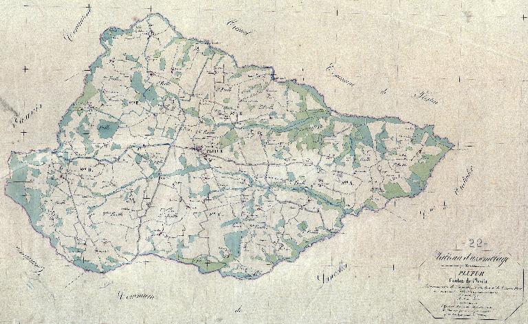 Un premier cadastre a été établi en 1816 pour la commune de Plufur. Il est composé d'un tableau d'assemblage et de 13 feuilles (5 sections). Le cadastre réalisé en 1848 comporte également 5 sections : Keranroux (section A en 3 feuilles), Le Lesclec'h (section B en 4 feuilles dont le bourg), Guernionec (section C en 4 feuilles), Manac'hty (section D en 3 feuilles ; Développement de la section D) et Lestéo (section E en 3 feuilles). Si la section de Keranroux correspond à un ancien manoir, Lez Clec'h ou Lesclec'h à un moulin à eau (alimenté par le Yar) et à un pont, le toponyme Guernionec correspond à deux fermes, le Manac'hty à un ancien prieuré et Lestéo fait référence à un hameau traversé par un chemin qui rejoint Plounérin. La population à cette époque est de 1579 habitants ; le cadastre permet de dénombrer 315 maisons ou constructions diverses (OGEE, MARTEVILLE, VARIN, réédition de 1853 ; JOLLIVET, 1859).