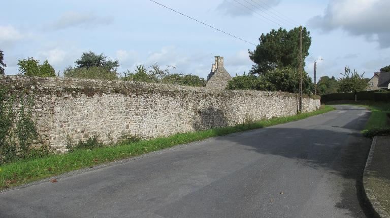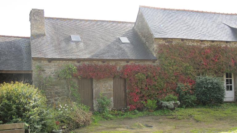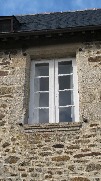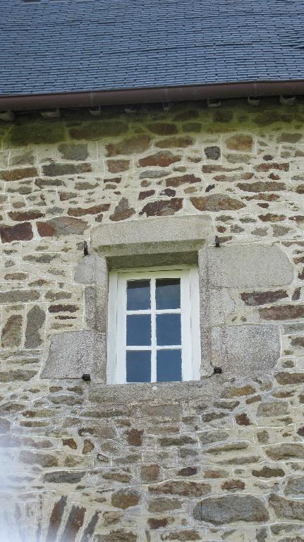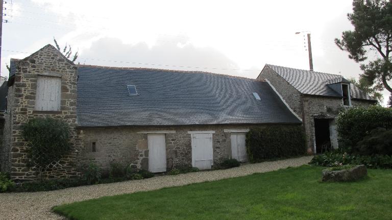 allignement, consistante en maison ancienne du fermier, une étable, écurie, grange et bergerie, construite en moellon de pierre de taille, le tout sous couverture d'ardoises contenant quatre vingt dix pieds de long, sur vingt deux pieds de laize, cour au devant du tout, au coin entre orien et midy de laquelle cour il existe un corps de batiment sous couverture d'ardoise construite en moellon de pierre de taille divisé en trois etres dont les deux premiers vers midi servent de retraites a cochons et le troisieme vers nord detable aux veaux, contenant quarante huit pieds de long sur quinze pieds de laise, autre petit batiment en forme de remise est en la maison ancienne du fermier construite en moellon sous couverture d'ardoises contenant vingt trois pieds de long sur dix huit de laises, jardin muré au midi et à l'occident de la maison principale avec courtil à chanvre, et petit verger derriere la maison ancienne du fermier, du tout contenant contenant par fonds deux journeaux joignant d'orient au chemin qui conduit de Lanvallay aux Rochettes, du midy au Grand Domaine cy après et d'occident et nord aux bois et vallées aussi cy après. En général, tous les batiments sont antiques et indiquent reparations de couverture, portes et fenetres. Compte fait des chênes emondables plantés sur les fossés du verger, il s'en est trouvé vingt un estimés valloir de rente et revenu annuel, de bois reduit a fond cent trente livre cy 130 l.