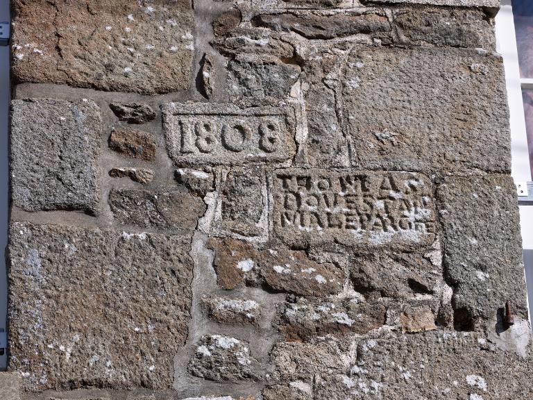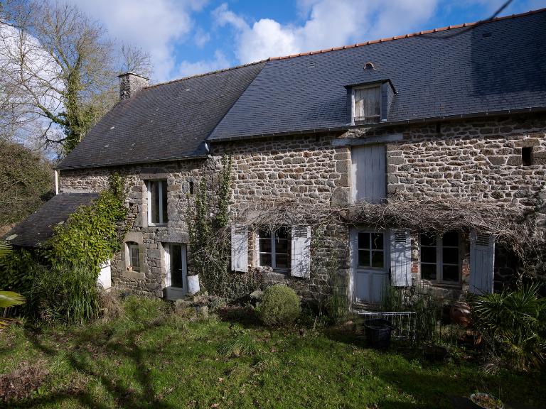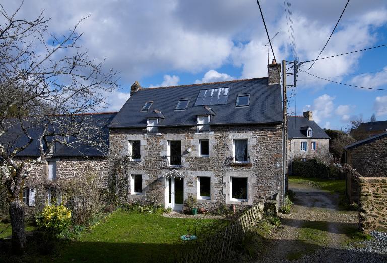 Enfin, quelques maisons plus grandes, à deux ou trois pièces au sol, comme celle de Pierre Bouétard et son épouse Marie Marie recèlent des informations utiles sur les savoirs faire et la manière d'habiter. Ce logis repris en façade en 1858 est plus ancien. Les premières portes jumelles du rez-de- chaussée, en arc plein cintre, datables de la fin du 16e siècle se devinent toujours, elles ont été modifiées et agrandies. De la même époque la crossette de pignon sculptée d’une tête souriante a été replacée dans l’angle de la façade. La distribution intérieure originelle maintenue en place révèle également une disposition intéressante commune aux anciennes maisons rurales de la Rance maritime. Le mur de refend de la salle, en pierre de taille de granite intègre dans son épaisseur un escalier en vis, une porte et un vaisselier mural. Le jardin arrière de cette maison conserve deux bassins à rouir le chanvre, activité artisanale ancestrale liée au commerce de la toile ou aux équipements des navires, bouts et divers cordages.