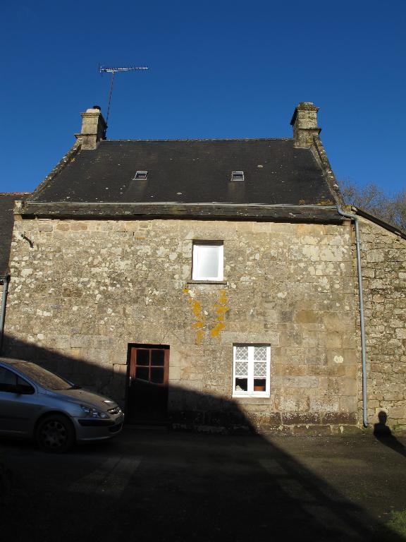 D'autre part, il ne semble pas y avoir de reprise entre le logis haut et la partie basse à gauche, très remaniée : il s'agirait alors du schéma fréquent en Centre-Bretagne associant un logis à étage de plan massé avec un logis bas comportant le plus souvent une partie réservée à l'élevage et au stockage. (C. Toscer)