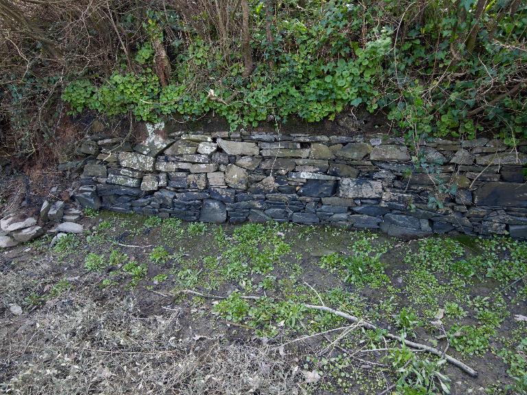 Selon les endroits, les talus-mur sont construits avec 2/3 de pierre et 1/3 de terre ou inversement. les arbres plantés sur ses murs ont souvent été supprimés. La qualité de la mise en oeuvre en moellon de schiste explique la bonne conservation de ces constructions quand elles n'ont pas été détruites ou abîmées par les remembrements.