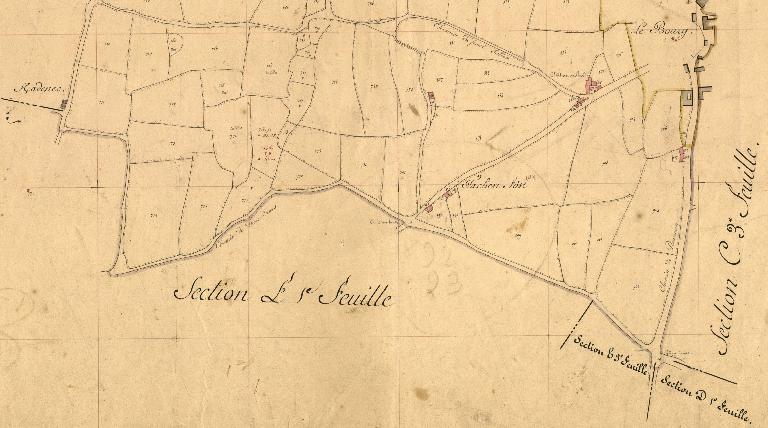 La croix dite "Diou Croas" est mentionnée sur les cadastres de 1816 et 1848. A l'origine, elle était située au milieu du carrefour. Cette petite croix de chemin pourrait dater de la fin du Moyen Age ou du 16e siècle.