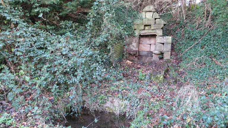 Il s'agit d'une fontaine construite en pierre de taille de granite, à mur pignon à rampants (type trégorrois), linteau en arc surbaissé surmonté d'armoiries (martelées) et petit bassin rectangulaire encadré de deux assises à baratte (sceau). Le trop-plein d'eau s'écoule par un canal et alimente un pédiluve (?) et un bassin rectangulaire divisé par un palis de schiste (?). La maçonnerie est très désordonnée suite à un accident ancien (un cheval avec son attelage serait tombé du champ situé en surplomb sur la fontaine). Cette fontaine - datable du 16e siècle - mériterait d'être débroussaillée, restaurée et valorisée. Il pourrait s'agir d'une ancienne fontaine de dévotion.
