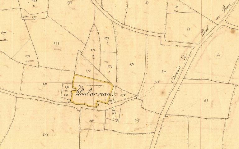 Cette fontaine est située à proximité immédiate du manoir de "Poul ar Vran" - siège d'une ancienne résidence seigneuriale et d'une exploitation agricole - qu'elle alimentait en eau. En breton, Poull fait référence à une mare, à une fosse ou à un étang (en l'occurrence à la présence d'eau) tandis que Vran signifie le corbeau. La fontaine figure sur le cadastre de 1848.
