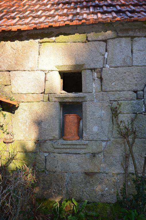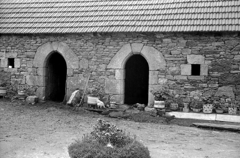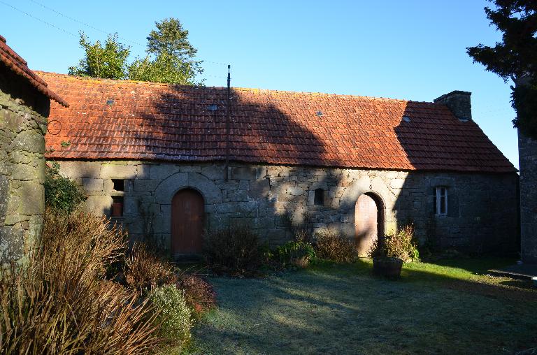 - un second logis en alignement du premier : si la porte est identique au logis précédent, les linteaux en arc segmentaire de la fenêtre et du jour permettent de dater ce logis du 18e siècle. A l'intérieur, on trouve les aménagements caractéristiques de cette époque : grande cheminée dotée de plusieurs niches, kuz gwele (alcôve destiné à accueillir le lit-clos), ensemble regroupant saloir (cuve en granite), pierre à saler et vaisselier (en arc plein cintre). Plafond avec hourdis de barrasseaux. Il est déclassé en remise. Les barreaux de la fenêtre sont toujours en place.