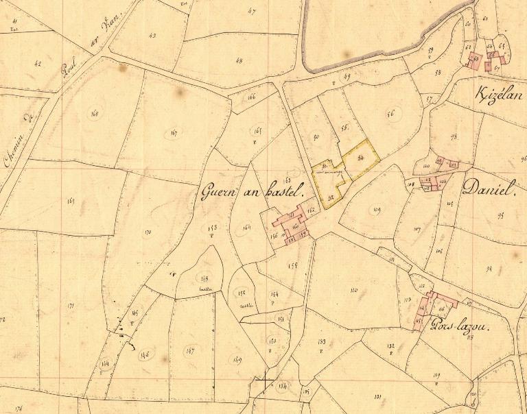 Selon toute vraisemblance, il pourrait s'agir de la métairie du manoir de Guern ar Hastel ou de l'une des fermes dépendant de cette seigneurie. Dans le jardin se trouvent les vestiges d'une ancienne croix de chemin qui marquait le carrefour au 16e siècle.