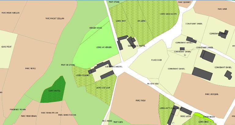 Ensemble bâti ancien, à la fois résidence et exploitation agricole, figurant sur le cadastre de 1816 de Plestin associé au toponyme "Bourdoulous". Le cadastre de 1848 confirme le toponyme. Cet ensemble est situé face au manoir de Guern ar Hastel et à proximité immédiate d'un carrefour à l'intersection de quatre chemins.