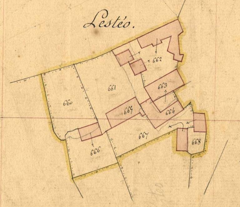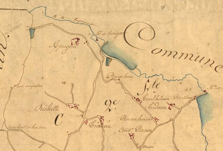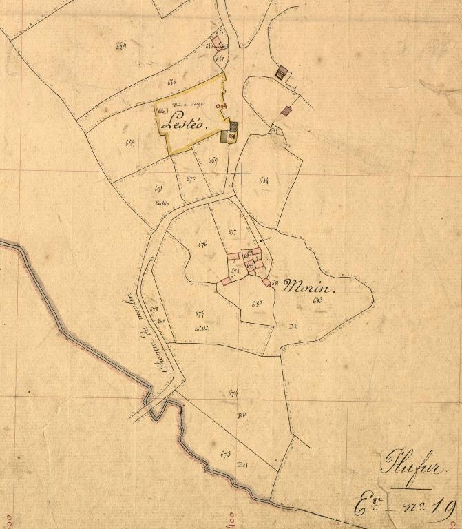 Le chemin empruntant la chaussée est appelé "chemin du Moulin" ; côté Plufur, il part d'entre les fermes de Lestéo et Morin (cadastre de 1848). De Kerprigent, il permettait de rejoindre la chapelle Sainte-Trinité aujourd'hui détruite. Selon une habitante de la ferme de Lestéo, le chemin du Moulin permet de rejoindre le chemin de Saint-Nicolas et la chapelle homonyme située le long du Yar.