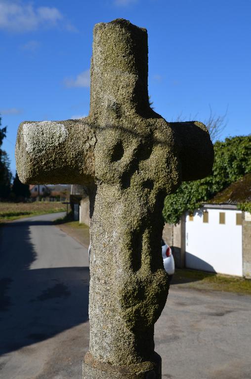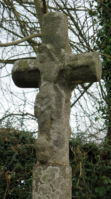 La croix du carrefour de Kertanguy n'est, ni mentionnée sur le cadastre de 1816, ni sur celui de 1848. S'agit-il de la croix du bourg ? Cette croix de chemin est datable de la fin du 16e siècle voire du 17e siècle. A l'avers, un Christ, représenté vivant : tête droite, corps légèrement pendu par les bras, les jambes fléchies ; il semble impassible. Au revers : une Vierge à l'enfant. La sculpture en granite gris à gros grain est très érodée.
