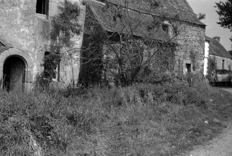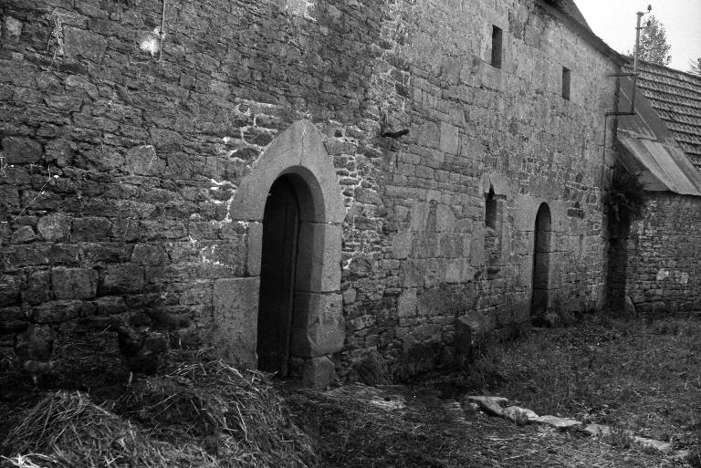- un alignement de deux logis à étage orientés vers le sud-sud-est : l'un des deux logis date des années 1660-1680 (porte nord en arc plein cintre à clé en T), le second semble dater de fin du 17e siècle ou du 18e siècle (la pente du toit visible au niveau du pignon a été adoucie). Ces deux logis ont pour particularité de reprendre des éléments du 16e siècle : baies à appui et linteau en accolade, baies chanfreinées en cavet à griffes, linteaux de porte à accolade... Ces éléments et décors attestent d'une reconstruction.