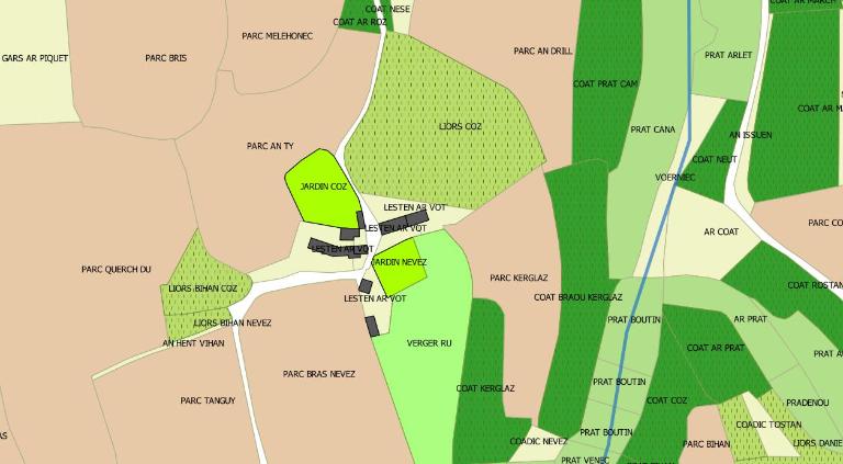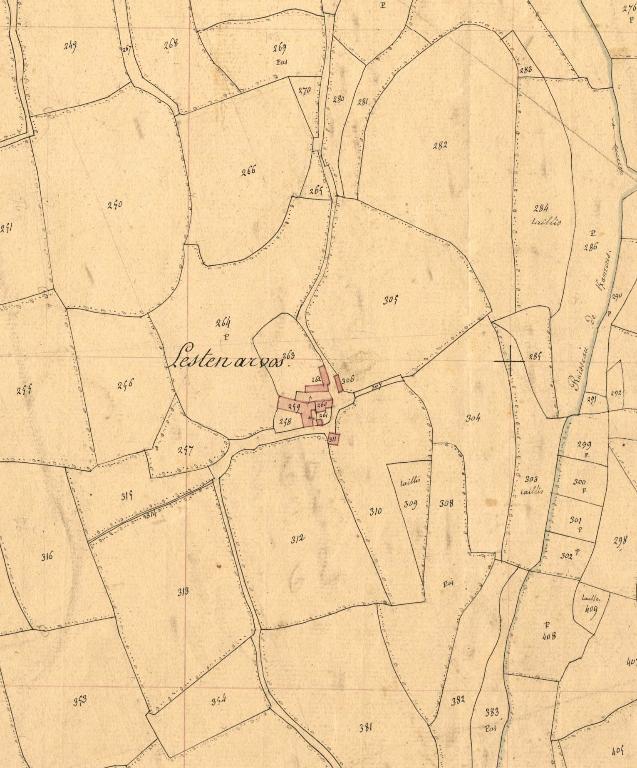 Ensemble bâti ancien, à la fois résidence et exploitation agricole, figurant sur le cadastre de 1816 de Plestin associé au toponyme "Lesten ar Vos". Le cadastre de 1848 confirme le toponyme.