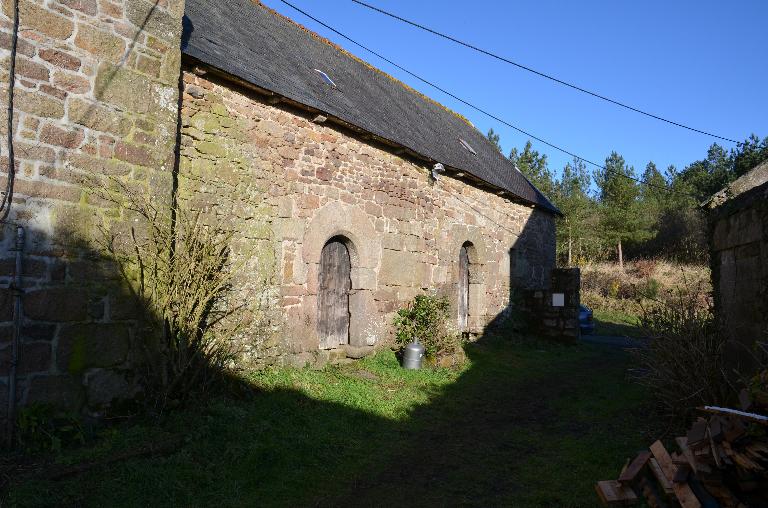 - au sud, un logis de type ternaire, vraisemblablement datable de la fin 18e siècle ou du premier quart du 19e siècle, mais remployant des éléments anciens (linteaux à accolade par exemple, poutres...). Au rez-de-chaussée, accessible par une porte à linteau droit en position centrale, on trouve le mobilier d'attache caractéristique de l'époque : grande cheminée dotée de plusieurs niches, kuz gwele (alcôve destiné à accueillir le lit-clos), ensemble regroupant saloir (cuve en granite), pierre à saler et vaisselier (en arc plein cintre). A l'étage, cheminée à linteau droit caractéristique du style des ingénieurs. Charpente ancienne en place avec marques de montage ; plancher des combles sur solives reposant sur les poutres.