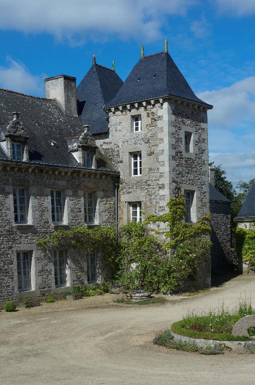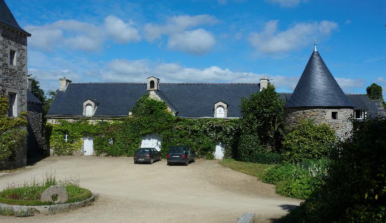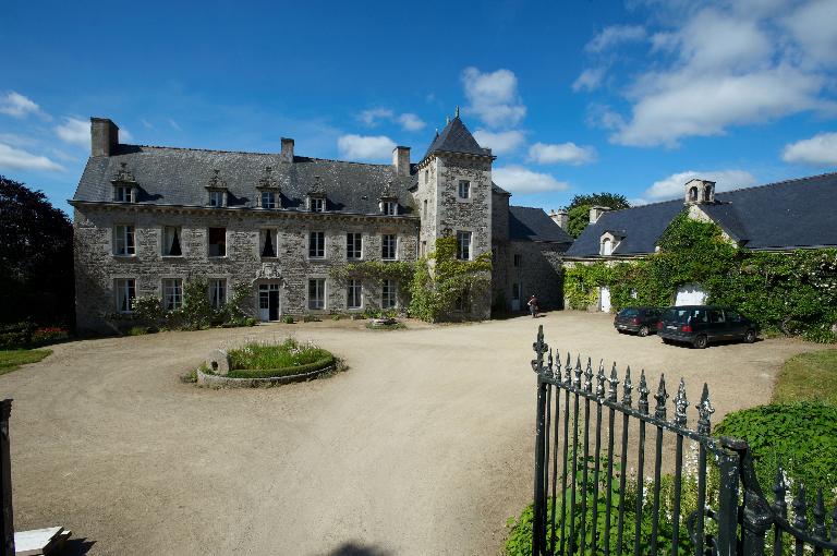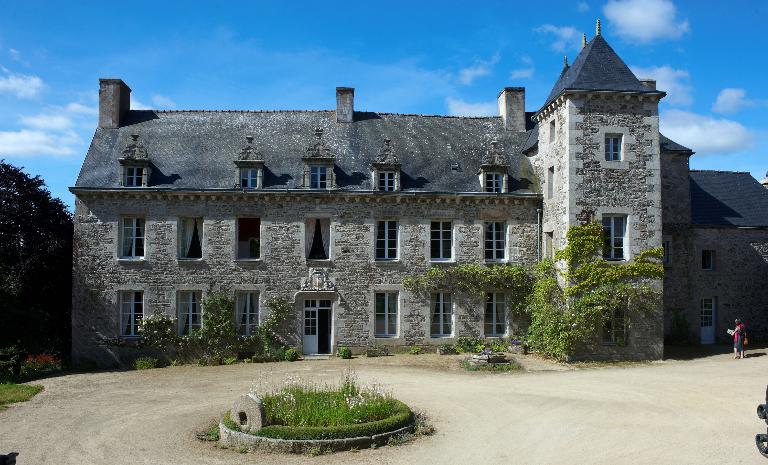 Vers 1860, des travaux importants sont réalisés par Joseph de Kermel pour moderniser le logis et son environnement immédiat (plan daté). L'aile ouest figurée sur le cadastre ancien, construite contre le pavillon du 17e siècle, est détruite. Les traces de portes bouchées au rez-de-chaussée et à l'étage signalent une communication intérieure entre cette aile et le pavillon. Cette suppression permet l'édification de la tour d'escalier carrée devant le pavillon du 17e siècle afin de fluidifier la circulation intérieure. De nouvelles écuries et remises sont bâties sur le côté ouest de la cour. A l'est, la seconde aile qui reliait la tour de défense au logis est également abattue afin d'ouvrir la cour sur l'espace environnant. A l'intérieur du manoir, l'aménagement est repensé au rez-de-chaussée : la cuisine est rejetée à l'extrémité ouest du logis dans un bâtiment secondaire construit à cet effet, dans le prolongement du pavillon ; des cloisons sont montées pour ménager de nouveaux espaces (vestibule d'entrée, pièce à usage de bureau, petit salon, grand salon). A l'extérieur, la façade nord est entièrement remontée avec de grandes baies disposées en travées dans un soucis de symétrie. Le décor est inspiré du style Renaissance : porte d'entrée surmontée d'une archivolte ; fenêtres de l'étage à appui saillant mouluré et linteau à décor de losanges ; lucarnes ; corniche à modillons. Au-dessus de la porte d'entrée figurent les armes des Kermel "De gueules à la face d'argent accompagnée de deux léopards d'or". Les façades sud sont également percées de nouvelles baies afin d'ouvrir sur le jardin.
