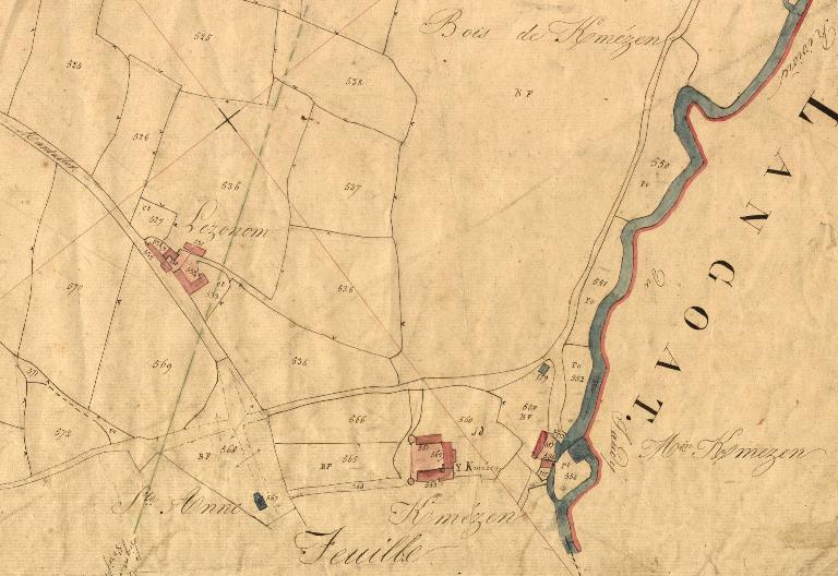 Fonds du cadastre ancien. Tableau d'assemblage et plans parcellaires de la commune de Pommerit-Jaudy, 1835