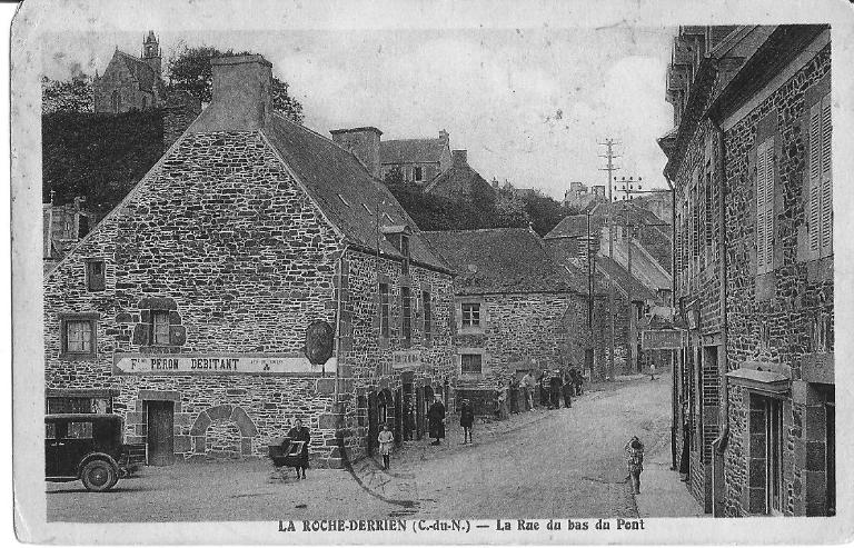 La place de Chef du Pont, de l'autre côté du Jaudy, est un ancien faubourg de La Roche-Derrien. Il se développe sur un lieu noble, le Chef du Pont, autour d'une petite place et de façon linéaire le long des voies qui y aboutissent. Dans les états de section de 1837, la parcelle bâtie n° 766 est dénommée "L'Auditoire", probablement l'ancien auditoire de la juridiction de Chef du Pont devenu magasin d'entrepôt au bord du Jaudy. En effet, la proximité du port favorise la construction d'entrepôts et de grandes maisons de négociants, sur un parcellaire un peu plus large que celui de la cité intra-muros. La population de Chef du Pont change probablement lorsque le trafic maritime périclite au début du 19e siècle et que les négociants quittent peu à peu le faubourg pour la ville haute. Des petites maisons sont construites en alignement le long de la côte Saint-Yves, de la route de Langoat à La Roche et de la rue de la rive pour abriter une population de couvreurs, charpentiers, menuisiers, lavandières et chiffonniers. Cet habitat modeste a presque entièrement disparu aujourd'hui.