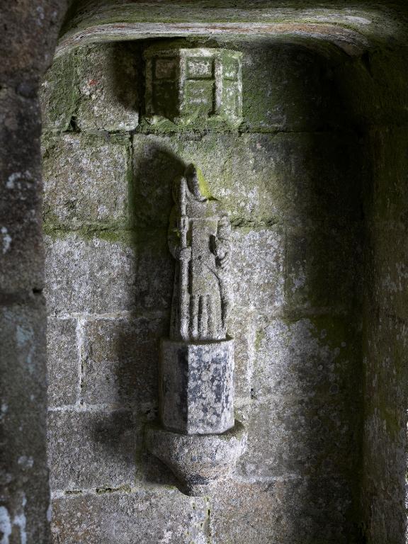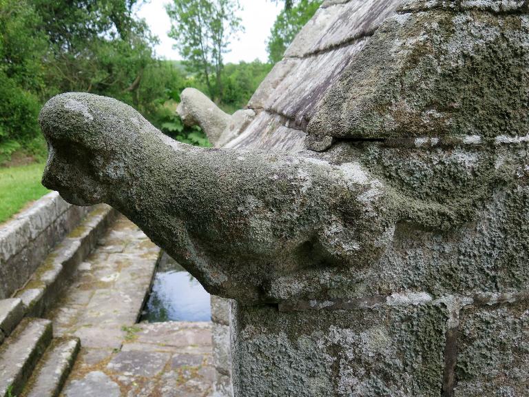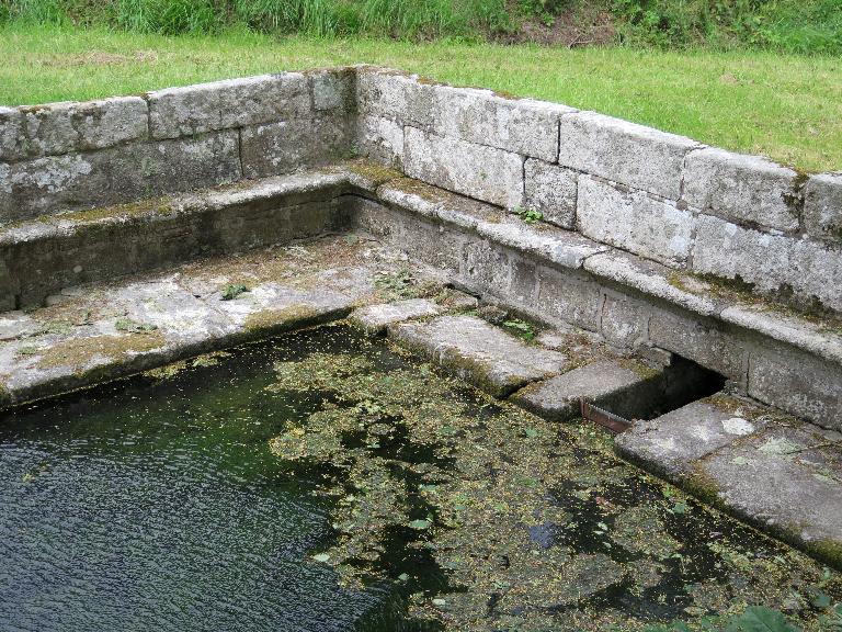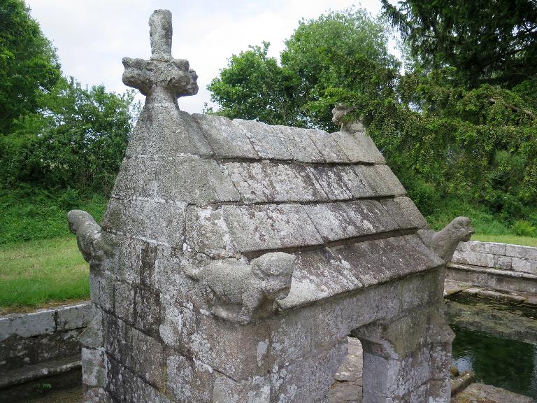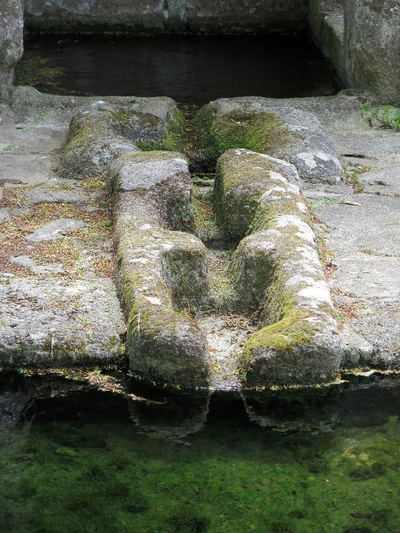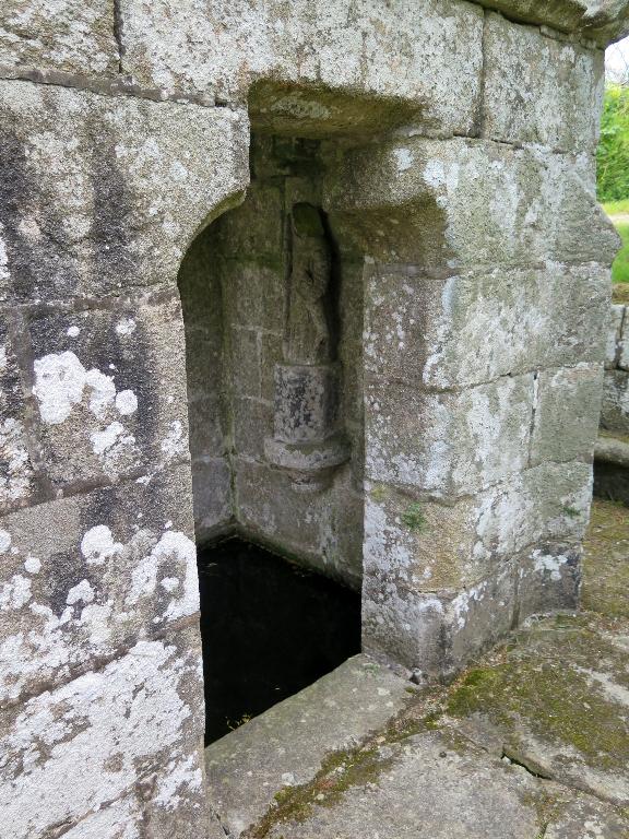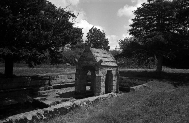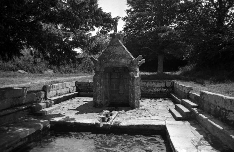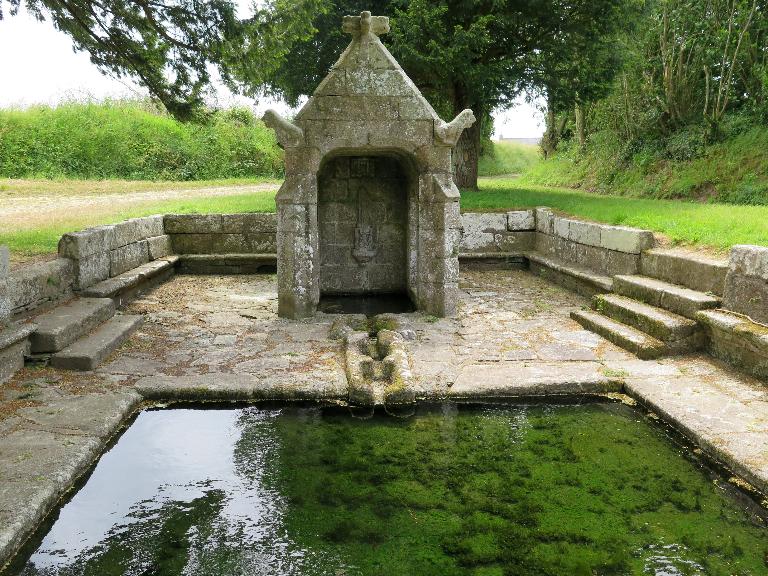 Édicule de forme rectangulaire dont la superficie avoisine les 85 m2, composé de quatre murs bahuts édifiés en maçonnerie de granite gris servant d'appui à un banc, avec accès par deux échaliers (à l'est et à l'ouest), contenant une fontaine voûtée en pierre à mur pignon à rampants à crossettes et fleuron sculptés qui abrite un petit bassin rectangulaire. La fontaine est dotée d'une console supportant la statue du saint. Le trop-plein d'eau s'écoule par un canal et alimente trois petits bassins-pédiluves ou "bassinets" et un grand bassin rectangulaire situé en aval.