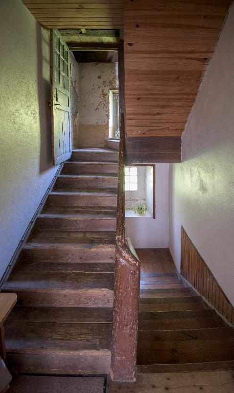 Au-dessus de l'étable, une lucarne passante signale la présence d'un ancien grenier. On observe aussi une grande porte charretière qui permet d'entreposer les machines agricoles dans la grange.