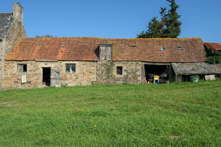 Le logis est accolé de plusieurs bâtiments d'exploitation sur sa partie ouest. Ces trois bâtiments sont édifiés en moellons de schiste et de granite, les baies anciennes étant maçonnées en pierre de taille, et les nouvelles en béton. L'étable, comme la grange, sont toutes deux couvertes de tuiles plates mécaniques.