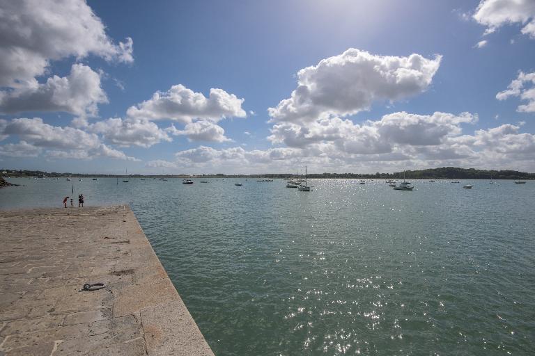 A l'emplacement du port, il y avait autrefois un moulin à marée. A l'origine, le moulin était construit en bois, sur un solide soubassement en pierre. En 1853, le moulin de la cale fait l'objet d'une démolition alliée à une addition de construction. Il passe de 3 à 20 ouvertures ordinaires imposables. Un magasin est construit sur la même parcelle et lui est jointif. Un bâtiment distinct en pierre et couvert d'ardoises est construit pour le logement du meunier. Il comprend en fait deux maisons sous le même toit, composées chacune d'un rez-de-chaussée, d'un étage carré et d'un grenier. Au nord, et dans le prolongement de ce bâtiment, un second corps comprend un rez-de-chaussée servant de logement pour le pressoir, un étage servant de chambre et un grenier. Une construction en bois et brique vient s'appuyer à l'est sur le premier bâtiment. Elle abrite un refuge à porcs en partie basse et deux chambres à l'étage. Un hangar en bois et une écurie en pierre, tous deux couverts d'ardoises, complètent l'ensemble. Au nord on trouve une cour avec une fontaine et une pompe. A l'ouest un jardin borde un lavoir alimenté par un ruisseau.