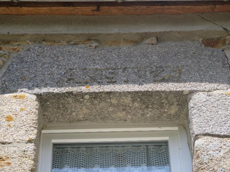 Logis de ferme daté 1830. L'inscription sur le linteau de l'une des fenêtres du logis permet d'identifier les commanditaires :